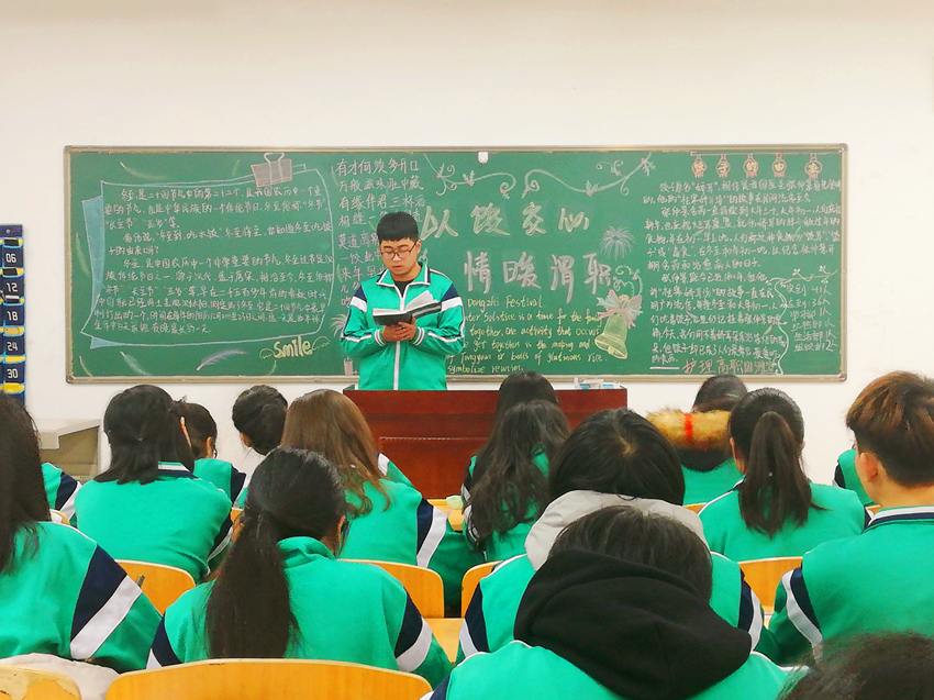 团支书通过ppt、视频、讨论等形式,向同学们普及了“冬至”传统节日的由来,讲述了饺子的寓意和文化内涵,部分班级结合营养学、国学知识,向同学们介绍了不同馅料饺子的寓意:勤财饺(芹菜饺子)、久财饺(韭菜饺子)、添财饺(甜馅饺子)等。护理五高1504班在此次团课中表现突出,团歌洪亮,板报内容丰富,让同学们感受到冬至的温暖。(撰稿:金年会金字招牌诚信至上 刘宇 审稿:吴亚飞)