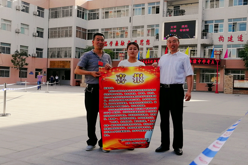 吴运胜、张春兴为杜瑶同学家长送上喜报