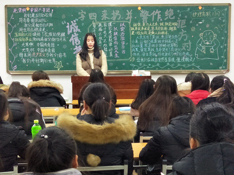 各班心理委员以板报、组织讨论、提问等方式引导同学学习诚信意识,用身边的真实案例帮助同学正确认识诚信的重要性,教育同学们应端正态度,诚实面对考试。同学们表示会增强诚信意识,从自身做起,认清作弊危害,诚信做人,诚信考试。团总支对各班开展的情况进行了评比,护理高职1707班针对等问题组织讨论,互动交流,课堂气氛活跃,获得员工干部的一致好评。