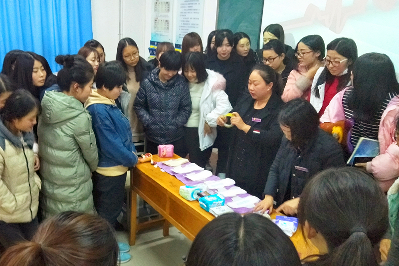田锐通过临床案例向员工们讲解了女性健康的重要性。讲解了女生卫生巾选择的重要性,她组织同学进行科学实验互动活动,在现场用“七度空间”、“ABC”等品牌的卫生巾向同学们做了测试结果展示,向同学们展示了科学分析数据,让同学们认识到不良行为是导致患病的主要导火索。她倡导同学们提高女生对健康的认识,把重视生理健康放在首位。
