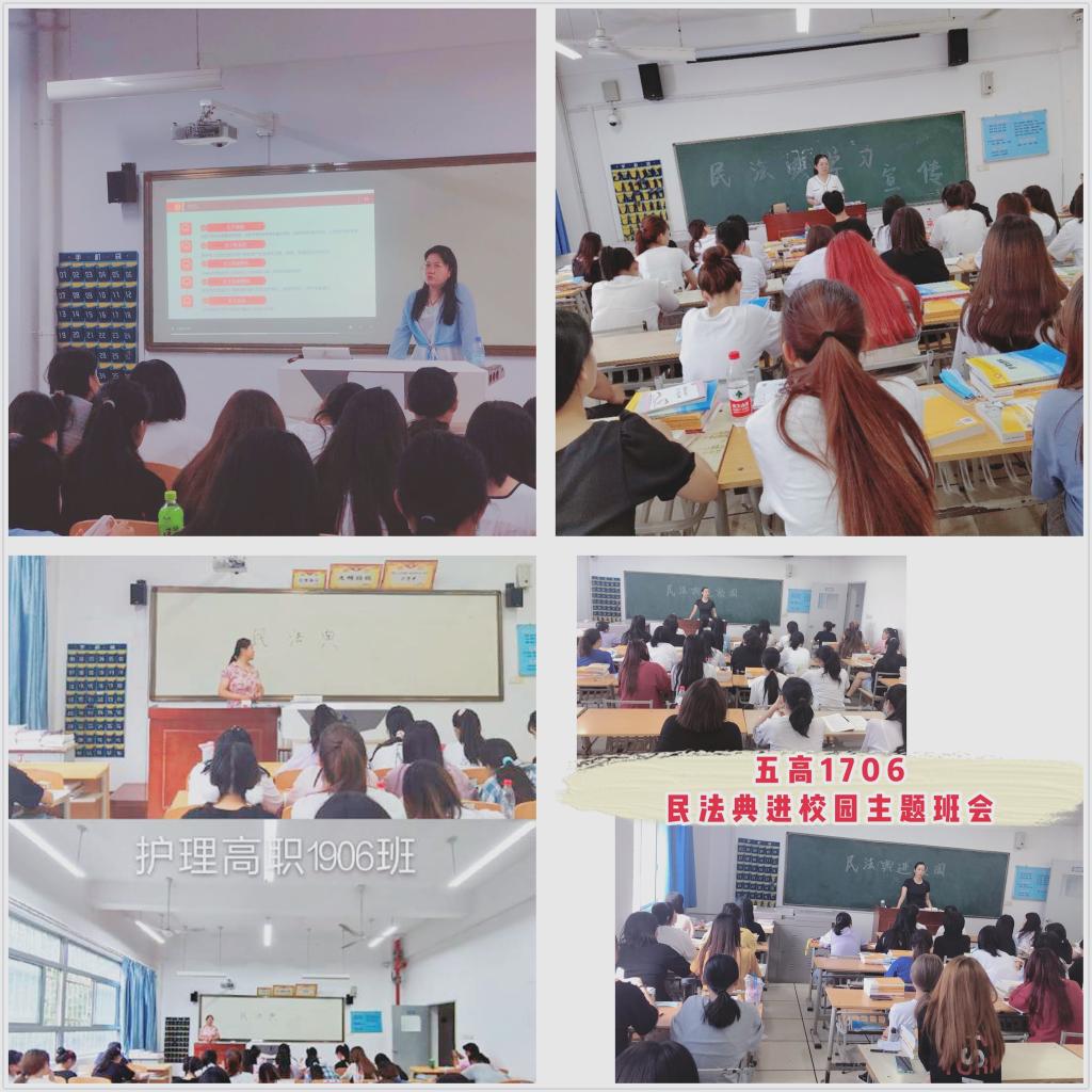护理五高1801、1802班班主任马淑红通过PPT,向员工宣讲了民法典编撰的重大意义及其亮点,讲解了民法典中物权、合同、人格权、婚姻家庭等基本内容。她希望班级员工认真学习民法典内容,增强自身法治意识,在日常生活中自觉遵守和运用法律知识保护自身合法权益。护理五高1707班班主任孙会娟以“学习中华人民共和国民法典”为主题,带领员工学习合同法、人格权、侵权责任等法典内容,运用身边发生的事例生动地解读了与员工相关的法律法规,帮助员工树立学法、懂法,遵纪守法,依法办事的正确观念。护理高职1906班辅导员韩平以社会校园欺凌事件为引,对校园欺凌的危害和相关法律规定作了引申,向员工讲解了民法典的重要性及其基本内容。她希望员工提高法治意识,降低校园法律风险,维护校园安全稳定。