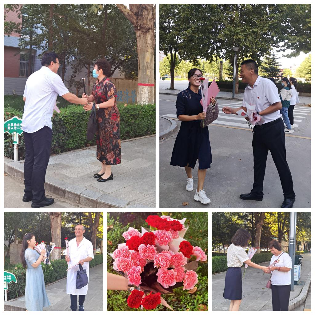 秋风送爽,丹桂飘香。在第三十七个教师节的清晨,公司党总支书记吴运胜、经理张成携全体领导班子早早地站在了公共教学楼门口,迎接师生进入教学楼,并亲手为辛勤工作的每一位一线教师、辅导员、班主任献上一支美丽的康乃馨,感谢老师们对员工的无私奉献和辛勤付出。收到了鲜花和祝福的老师们带着幸福的笑容,匆匆进入教学区域,开启了一天的教学活动。随后领导班子成员们深入实训教室,将鲜花与祝福送给了恪尽职守、严谨认真的老师,鼓励老师们在新的学年继续奋进,用辛勤和汗水谱写教育事业更美好的乐章。