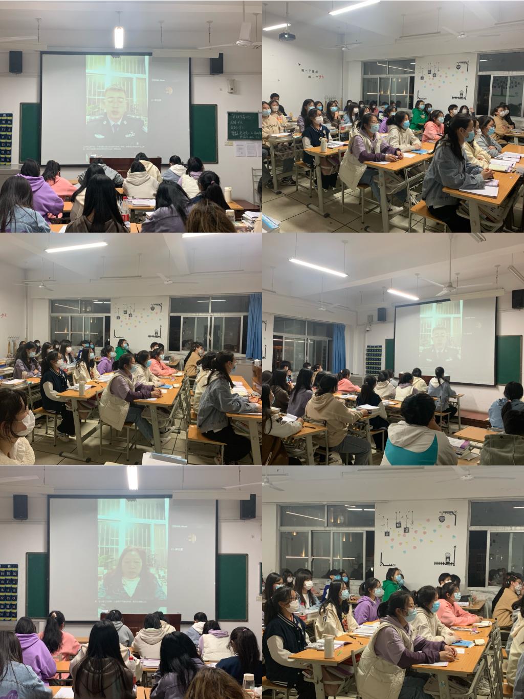 报告会上,屈警官通过腾讯会议的形式现场直播,辅导员和班主任组织各班利用教室网络及多媒体在教室开展线上聆听。他通过“青年兴则国家兴,青年强则国家强,青年是国家的未来和希望;人生最宝贵的是什么?当代青年老员工如何做到守法?如何有效防范不法侵害?”等四个方面,用同学们现实生活中的实际案例和法律知识相结合,将涉及未成年人的问题与员工日常生活学习情况紧密结合,用通俗易懂的话语,分别对校园欺凌、网络安全、疫情防控法律、交通安全及未成年人保护法等知识开展专题教育宣传讲解,引导员工要运用法律武器和安全防护知识来约束自己、保护自己,同时告诉员工们在面对不法侵害时应根据实际情况随机应变、加强自我保护,及时拨打报警电话。