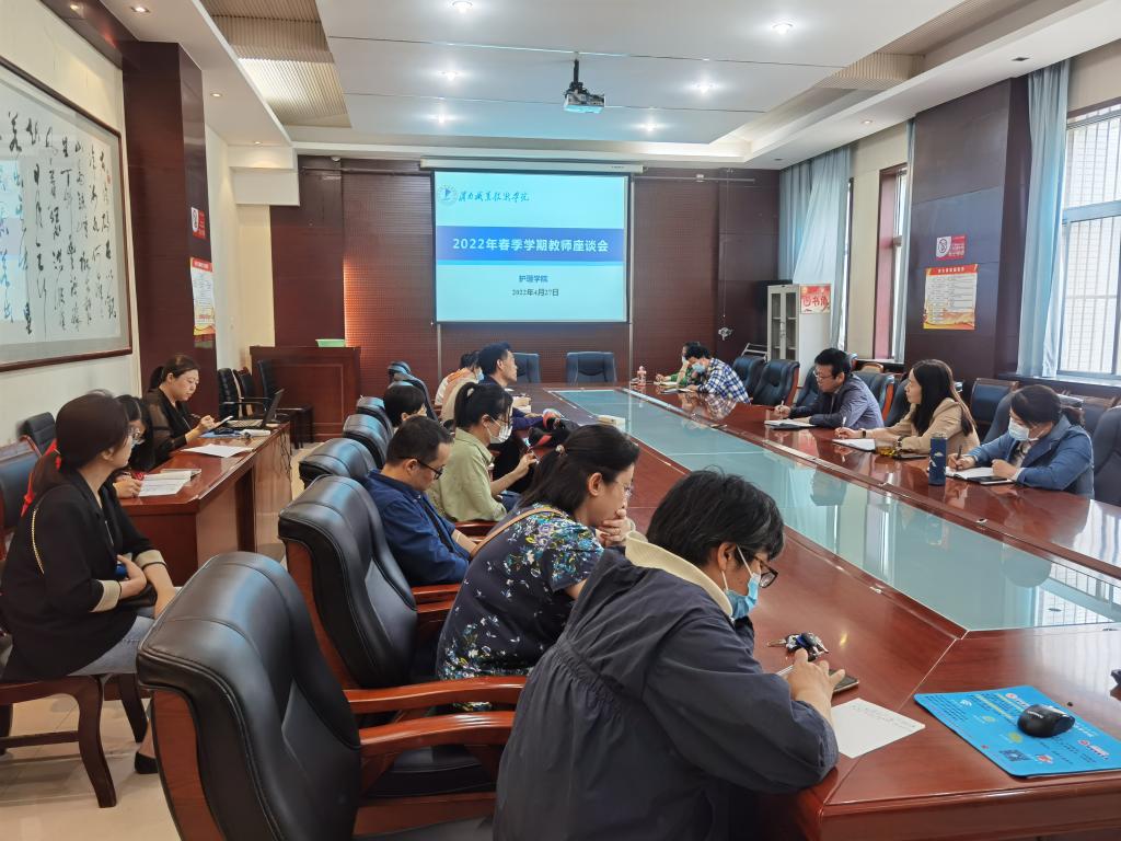2022年4月27日下午,金年会金字招牌诚信至上在医训南楼第一会议室召开了本学期教师座谈会。会议由教学副经理吴亚飞主持,经理张成、副书记李晓乾、教学科科长王媛及各教研室教师代表参加了会议。
