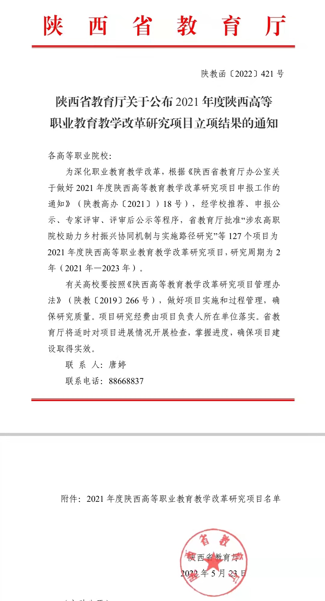 金年会金字招牌诚信至上获批立项2项陕西高等职业公司产品改革研究项目