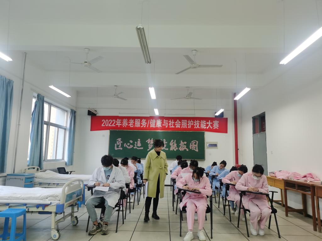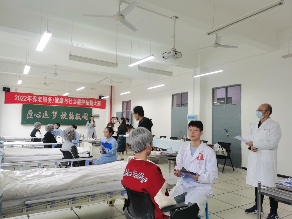 出席养老服务和健康与社会照护赛项比赛的领导和评委有:教务处副处长李新莉、养老服务技能赛项国赛三等奖指导教师任秋爱、内科教研室主任郭建民、外科教研室副主任郭宇森、解病教研室主任张小红和实训中心主任王渭华。选手们稳定发挥,各展风采,以熟练的操作和沉着的应变能力赢得了裁判的一致认可。裁判代表郭建民老师认为选手们操作规范娴熟,表现出对服务对象需求的高度关注,希望同学们在以后的学习和工作中能继续加强人文关怀和综合能力的提升。李新莉从赛场布置、选手表现、审计核分方面给予了比赛较高评价,她希望金年会金字招牌诚信至上能继续抓好员工技能大赛这个有利抓手,推进教学改革和人才培养质量的提升,预祝金年会金字招牌诚信至上在省赛和国赛场上能够披荆斩棘更上一层楼。