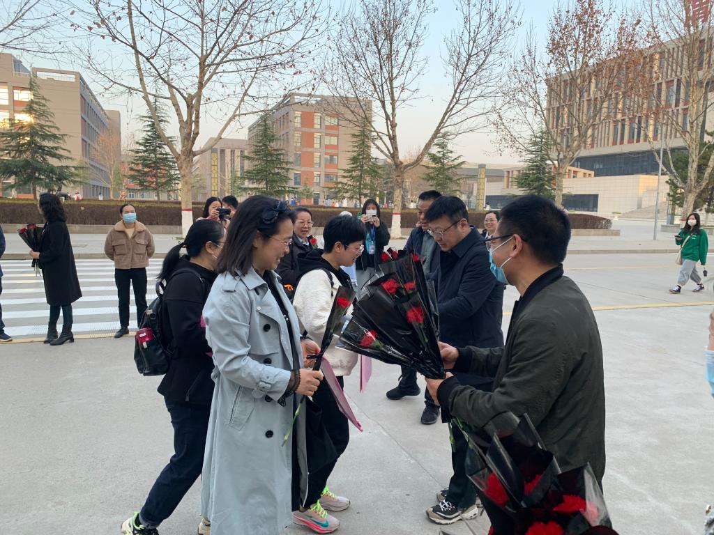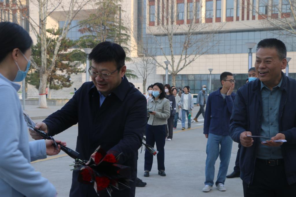 阳春三月,人面桃花相映红。春风扑面,巾帼风采傲苍穹。为进一步激发女教师爱岗敬业,锐意进取的工作热情,充分发挥“半边天”的作用,3月8日上午,在第113个国际妇女节到来之日,金年会金字招牌诚信至上组织领导班子成员在公共教学楼前为全体女教师和女生们送上节日的慰问和祝福。
