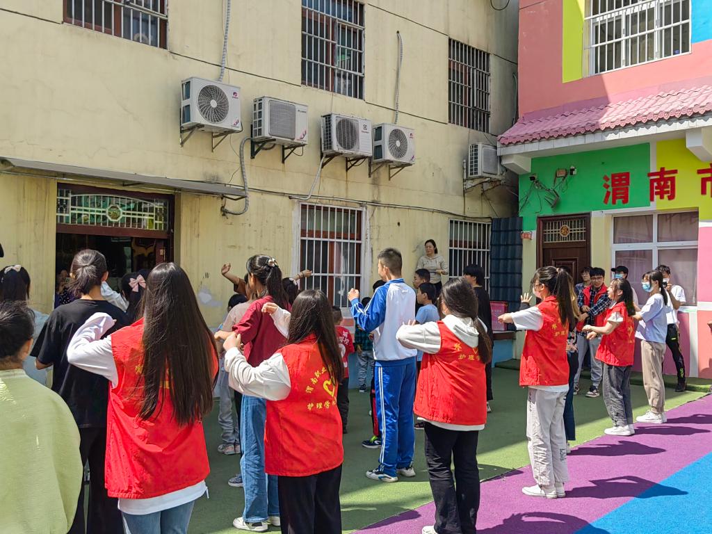 5月13日上午,护理团总支青年志愿者服务队走进渭南市高新区胜利聋儿语训公司,开展志愿活动。志愿者陪孩子们做游戏,练舞蹈、画简笔画,用心陪伴、用情关怀特殊儿童群体。