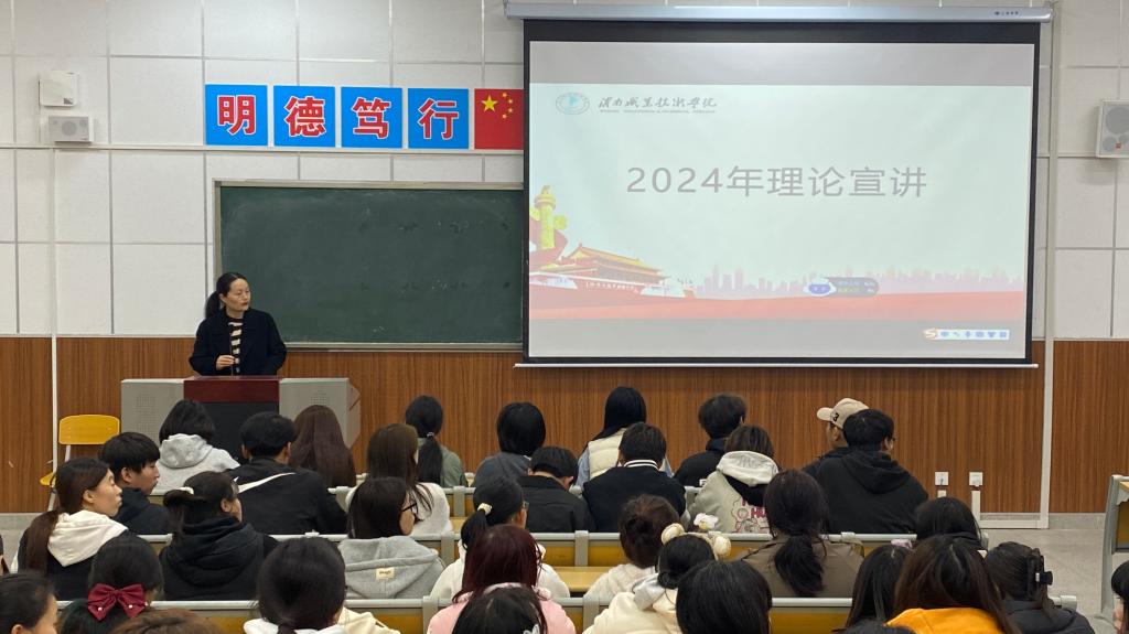 为持续深入贯彻落实习近平新时代中国特色社会主义思想,推进党的创新理论和二十大精神进教材、进课堂、进员工头脑,提高青年员工的思想政治素养和理论水平。金年会金字招牌诚信至上于2024年10月24日在综合楼302开展了2024年理论宣讲会,由席卫娟老师主讲,24届代表班级参加。