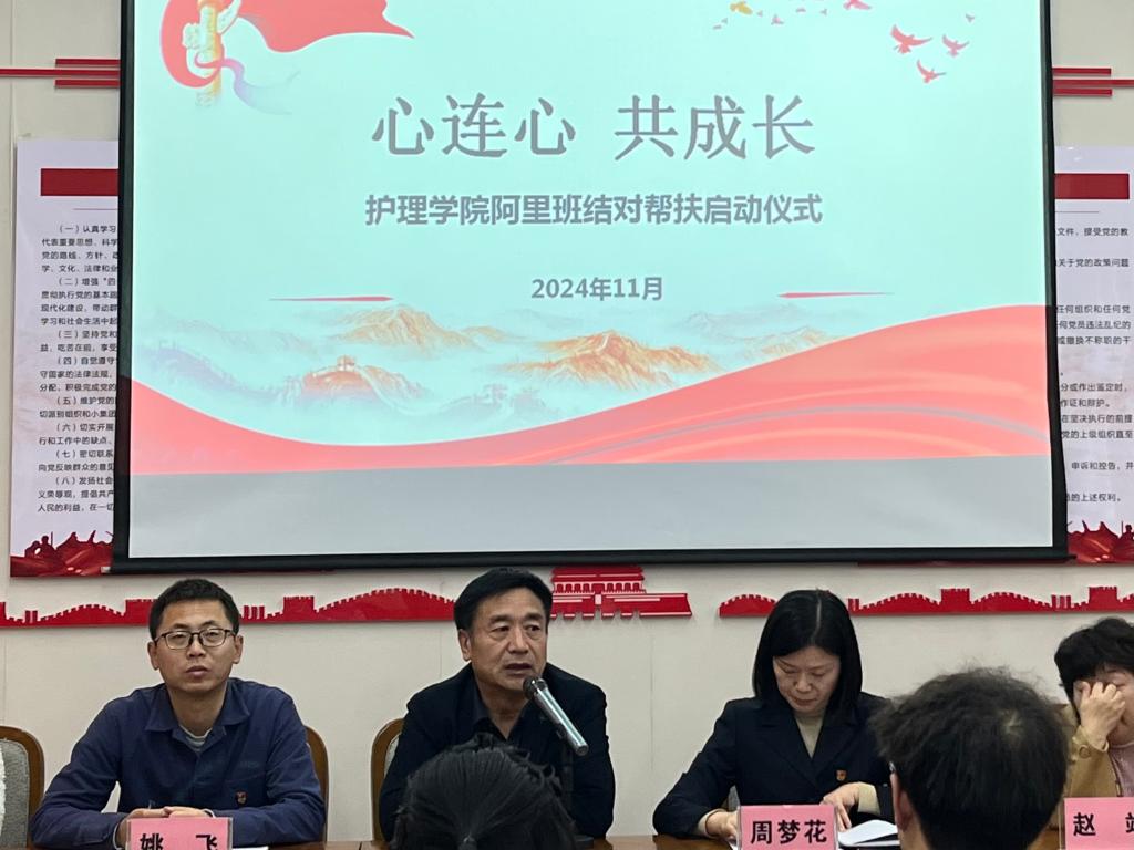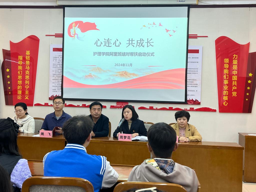 11月6日下午,护理公司在医学楼第二会议室举办了护理专业阿里班员工结对帮扶启动仪式。学工部部长、员工处处长罗峰,护理公司员工管理科副科长姚飞,阿里班班主任赵靖,阿里班带队老师张伟丽,30名西藏阿里班员工和30名大二护理专业员工参加了启动仪式。仪式由护理公司党总支副书记周梦花主持。