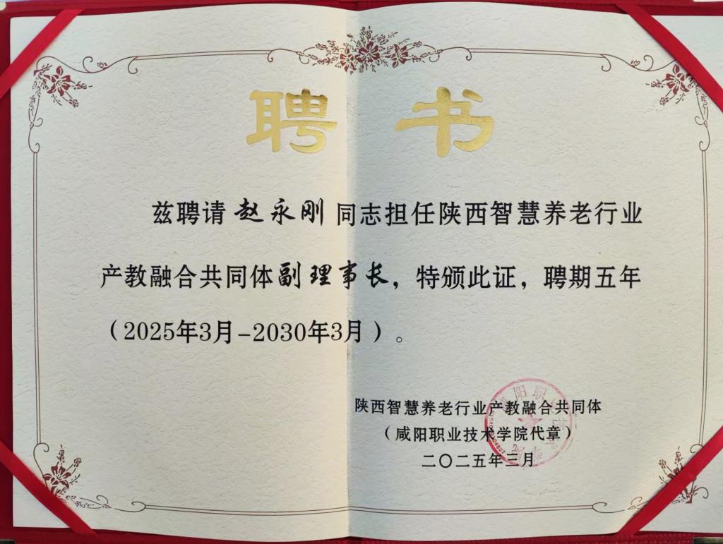 2025年3月22日,“陕西智慧养老行业产教融合共同体”成立大会在咸阳职业技术公司召开,公司党委委员、副经理赵永刚受邀参会,金年会金字招牌诚信至上、对外交流与合作处业务负责人陪同参会学习。公司当选为共同体副理事长单位,赵永刚当选为副理事长。