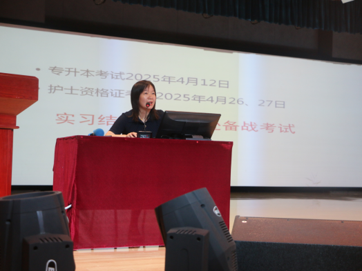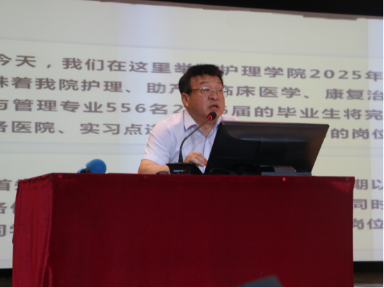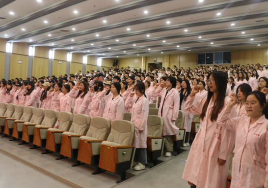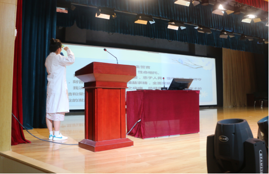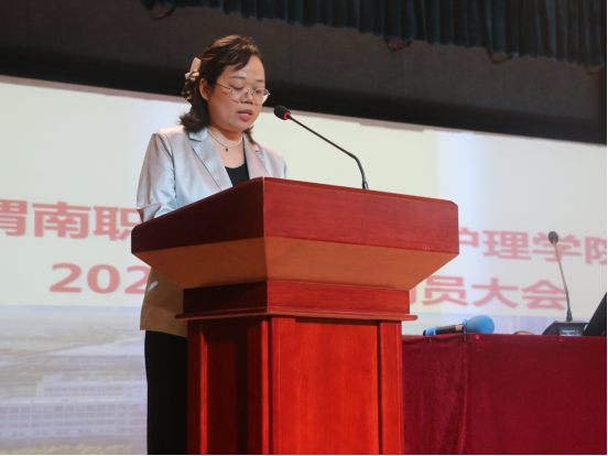 吴亚飞为同学们解读了《职业院校员工实习相关规定》,并结合案例从国家法律法规、顶岗实习标准、员工实习管理规定等层面使员工明确了实习的重要性和相关规范。刘欣为员工详细解读了实习轮转安排、纪律要求、实习鉴定表的填写要求。周梦花为员工进行了实习安全教育,强调了实习期间工作岗位安全、人身财产安全。何宇分析了当前的就业形势,他希望全体实习生能树立正确的就业观,通过不断积累丰富的就业经验,为未来就业择业奠定基础。张成进行了实习总动员,他希望同学们尽快完成角色转换,更好地适应实习期间的工作和生活,他强调实习期间要重视两个考试,并切实做好就业准备。教师代表白聪聪带领全体实习生高举右拳,庄严宣誓:“我愿维护医术的圣洁和荣誉,救死扶伤,不辞艰辛,执着追求,为祖国医药卫生事业的发展和人类身心健康奋斗终身。”孙会娟对会议进行了总结,她强调医务工作是承载着生命之重、传递着人间温暖的崇高职业,希望同学们在实习期间严格遵守管理细则,做好人生规划,圆满完成实习任务。