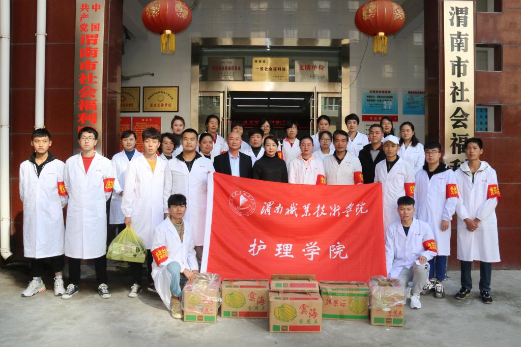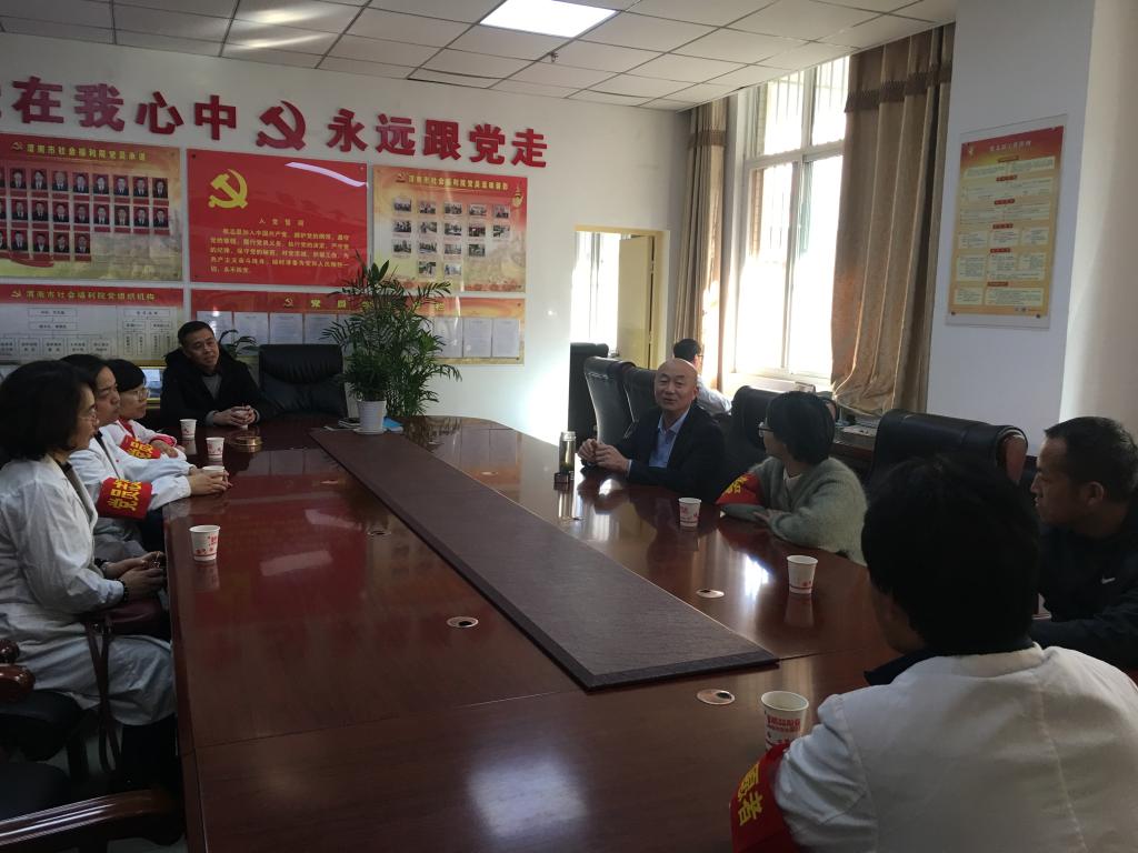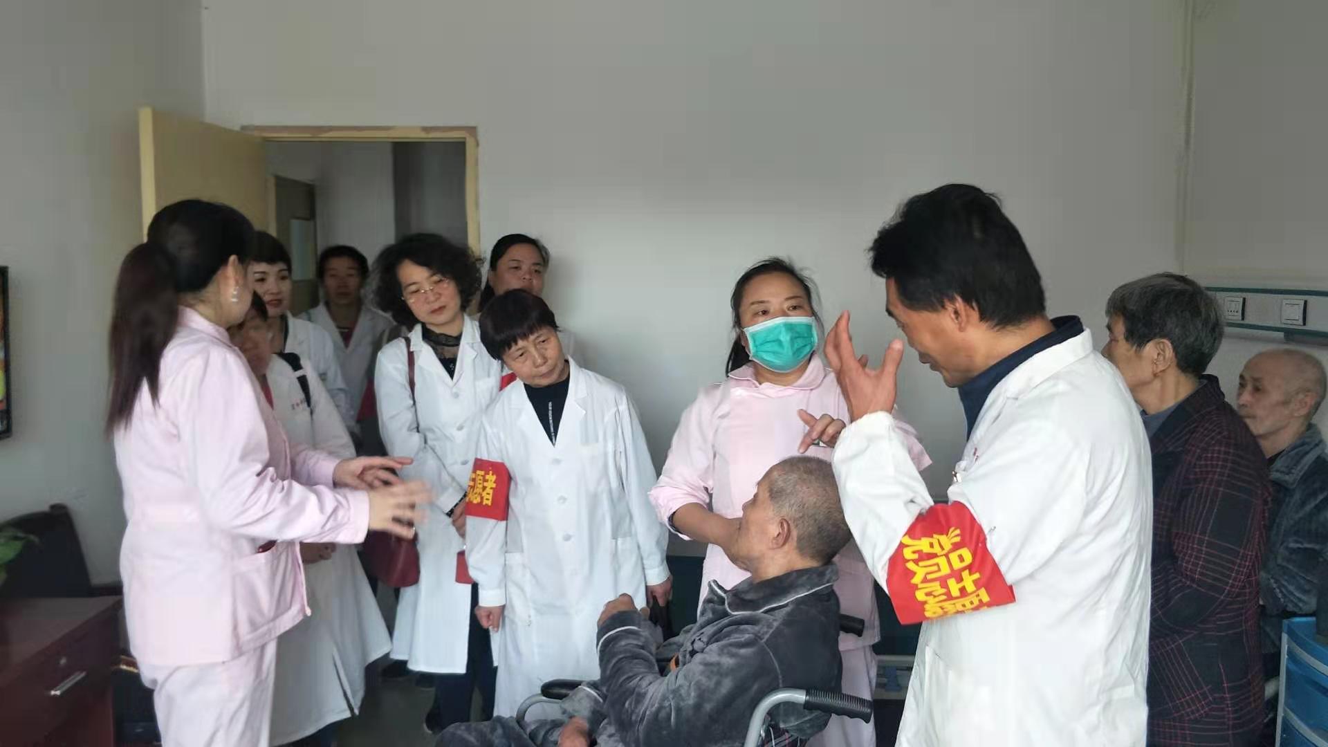 渭南市福利院负责人向志愿者介绍了福利院的基本情况和注意事项。志愿者在负责人的引荐下,为老人们送去了香蕉、苹果、梨等水果。他们根据不同楼层老人们的身体状况,展开了义诊工作。教师小组主要针对老人们的健康问题进行了咨询与宣教,党员教师走进每个房间,耐心、细致地为老人们解答健康困惑。员工积极分子逐一为老人们测量了血压、血糖、体温等体格检查项目。在义诊的过程中,服务队成员耐心倾听老人们的诉求,陪老人们聊天,回忆过去的峥嵘岁月,感受老人们艰苦奋斗的精神,帮助他们清洁生活环境,受到福利院老人们的一致好评。