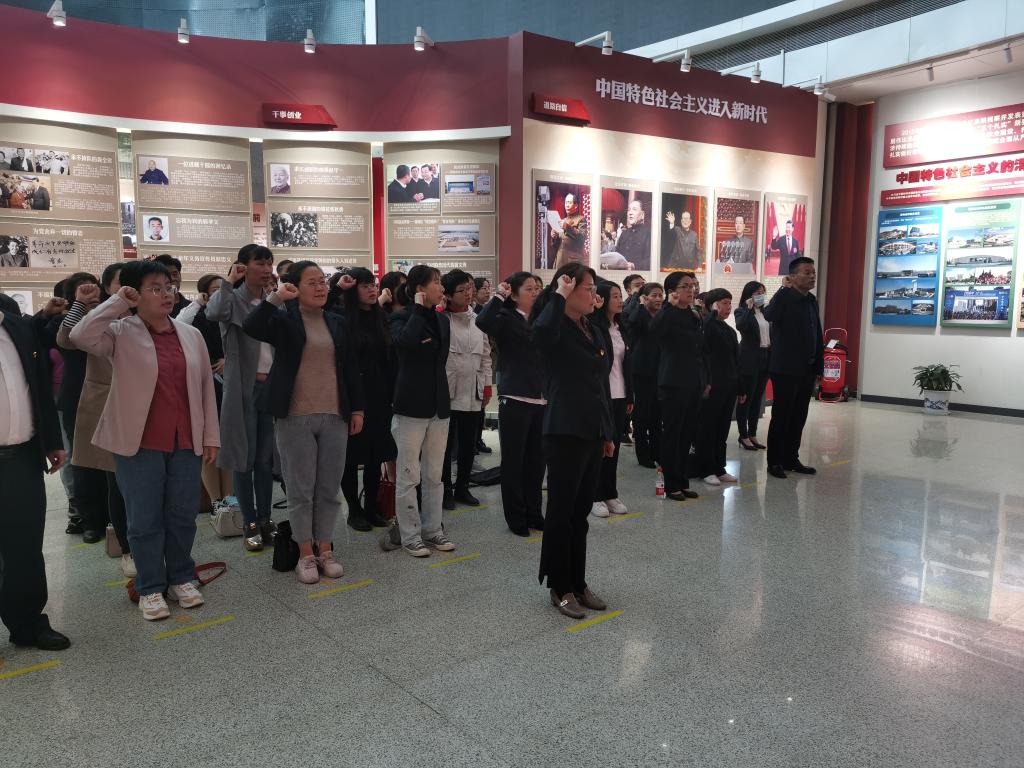 党员同志被先辈们自力更生、艰苦奋斗、开拓进取的精神所感动。在公司党总支副书记李晓乾带领下,面对党旗,紧握右手,重温入党誓词,坚定入党初心,践行党员使命。