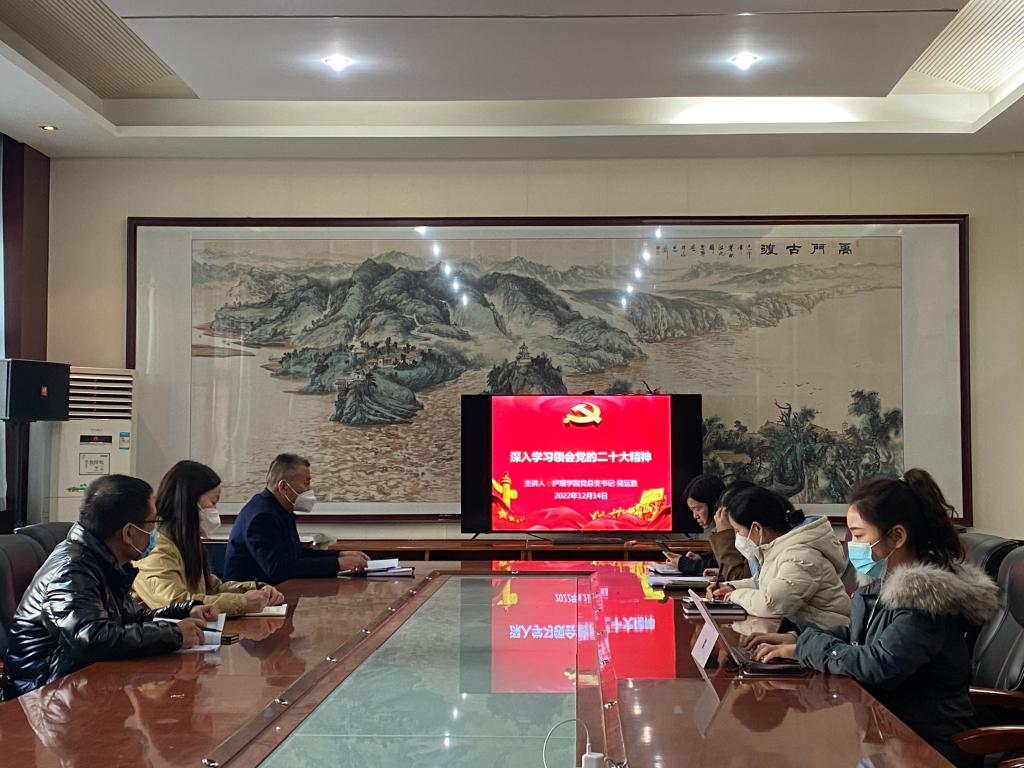 12月14日下午,公司党总支在医训楼第一会议室开展学习贯彻党的二十大精神主题宣讲会。宣讲会由公司党总支书记吴运胜作宣讲,不在公司党员通过腾讯会议参加宣讲会。公司党总支副书记周梦花主持宣讲会。