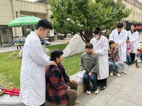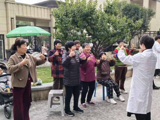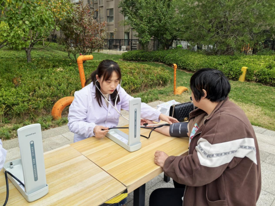 在社区服务点,党员教师和员工们发挥专业特长,为居民测量血压和肩颈按摩,教大家做手指操,热情细致的解答群众的疑问,针对不同病症和个体差异给大家讲解注意事项及常见病、多发病的预防知识。