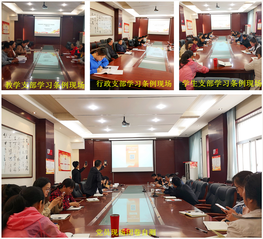 王剑、郭宇森、员工党支部组织委员乔欢分别带领全体党员通读了《党政领导干部选拔任用工作条例》全文。各支部书记要求党员干部深刻理解《条例》内容,重点领会新修订的《条例》中强调的突出政治标准、落实从严要求、激励担当作为、拓宽选用视野、体现精准科学、推动务实高效等6各方面的内容。各党支部组织全体党员以闭卷形式完成《条例》知识自测。公司党员干部认真学习《条例》内容,一个小时后,全部满分完成《条例》知识自测。