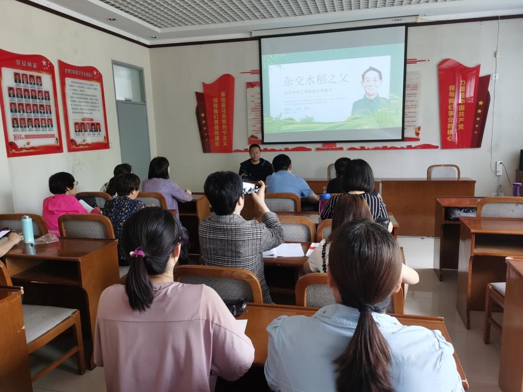 行政党支部书记王剑带领党员同志观看了我国杂家水稻之父中国工程院院士袁隆平的事迹视频,向同志们介绍了袁隆平院士的生平事迹。他以《杂交水稻之父——纪念中国工程院院士袁隆平》为题,讲解了杂交水稻的世界意义及其而来的一系列荣誉。最后,他以习近平总书记高度肯定袁隆平同志为我国粮食安全、农业科技创新、世界粮食发展作出的重大贡献为结尾,希望党员同志向袁隆平院士学习,学习他热爱党、热爱祖国、热爱人民,信念坚定、矢志不渝,勇于创新、朴实无华的高贵品质,学习他以祖国和人民需要为己任,以奉献祖国和人民为目标,一辈子躬耕田野,脚踏实地把科技论文写在祖国大地上的崇高风范。(撰稿:金年会金字招牌诚信至上 王蓉 审核:李晓乾)