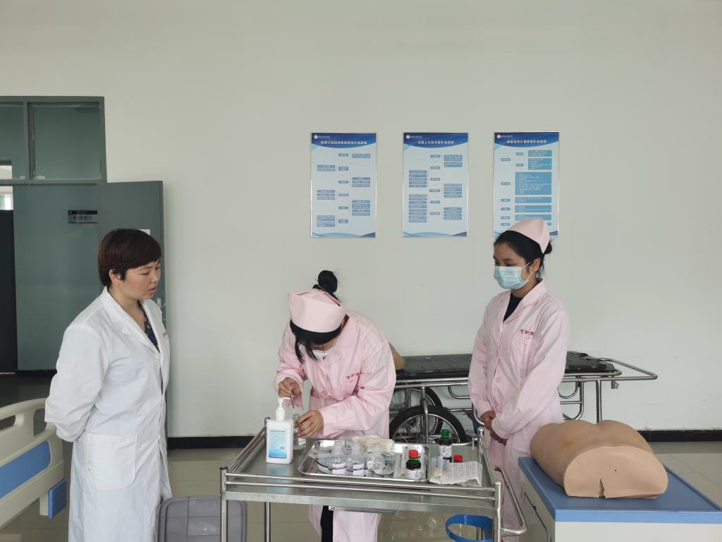 考试期间,公司党总支书记吴运胜、经理张成、副经理吴亚飞和教学科长王媛等对考试情况进行了巡视和检查,领导们一致认为本次考试员工思想重视、监考老师执考严格,起到了督促和检验员工专业技能的良好作用。吴运胜和张成在观看完一位员工的考核过程后饶有兴致地进行了点评并给予员工最中肯的建议和充分肯定。执考老师杨文娟在员工完成肌肉注射考核后及时指出了员工存在的问题并现场演示了排气、消毒和注射定位的方法,使员工通过考试发现短板、弥补不足,对实习工作树立了信心。