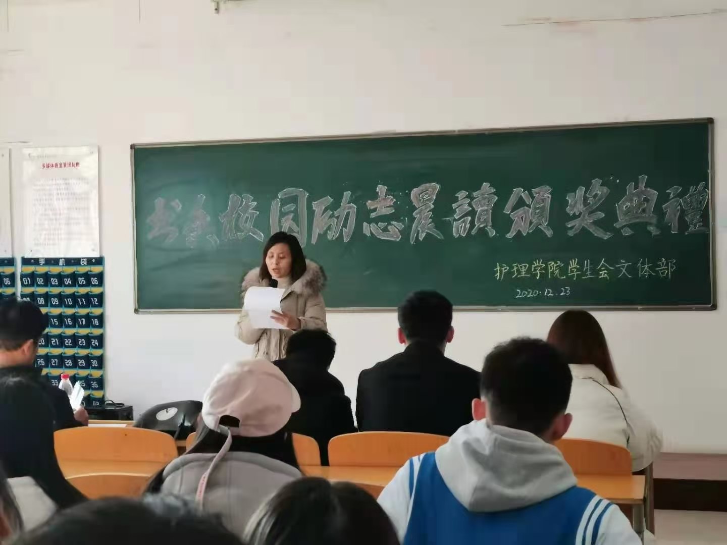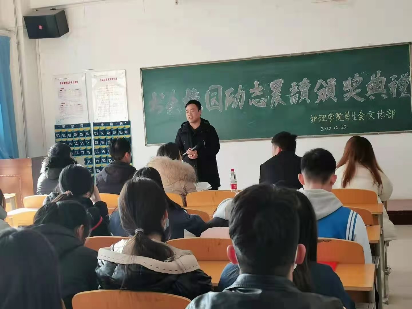 梁尚武为荣获本次活动奖项的班级颁奖并予以鼓励。优秀班级获得者护理高职2003班班长陈浩楠同学代表获奖班级作了发言。他希望各班级不断在学习的过程中展示我们老员工的风采,积极向上,再接再厉。