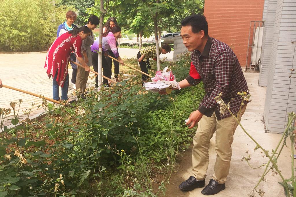 五月芳草萋萋,微风和煦,玉兰树苍翠挺立,蔷薇花灼灼绽放,公司党员在感受到初夏美好的同时,也看到悄然疯长的杂草。公司党总支为保护有“花园式校园”美称的美好环境,呼吁党总支红袖章志愿者志愿对玉兰园杂草、垃圾进行了清理,同志们一呼百应,齐聚玉兰园。他们仔细对杂草进行辨认,或借助工具,或徒手上前,对杂草进行了彻底清理。一番劳作之后,整洁的花园也令各位党员深感欣慰。