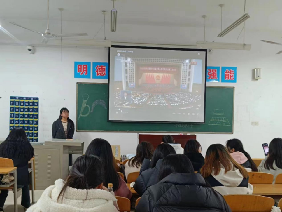 (团总支副书记郭瑞组织团学干部收看两会报道,关注两会热点)