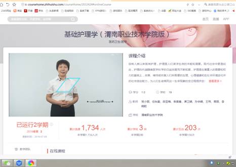 由教学党支部李丰收、党小丽副教授牵头,与智慧树合作建成了《护理学基础》《内科护理》《外科护理》《妇产科护理》《儿科护理》等5门在线开放课程。(图8)