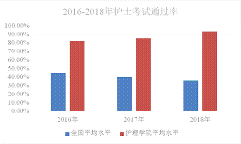 (4)2018年,建成了护士执业资格考证模拟题库,实现校内考试与全国护考的无缝对接。近三年护考过关率呈逐渐递增的趋势。(图10)。