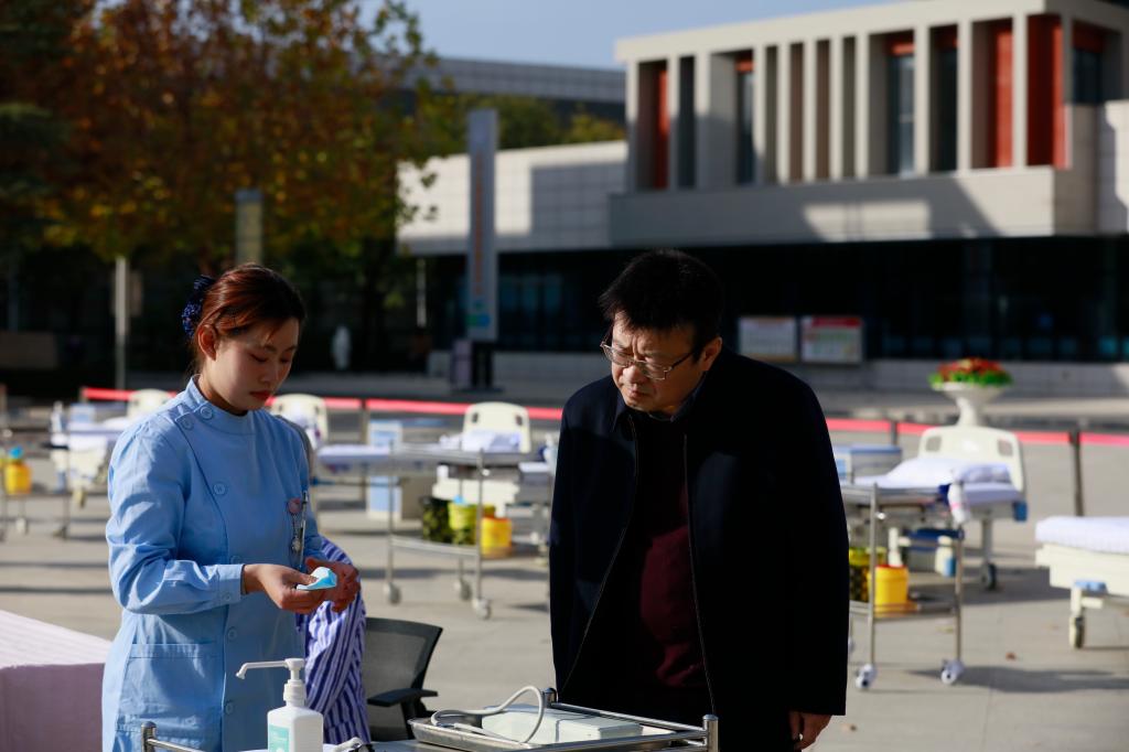 展演活动以全生命周期理论为整体设计思路,通过四个临床情境贯穿婴幼儿养育照护、成年人紧急救护、常见慢性病评定及康复治疗、老年人烫伤处理和血压检测6个操作项目。选手们以饱满的精神状态,精湛的操作技术赢得了现场嘉宾和同学们的阵阵喝彩。